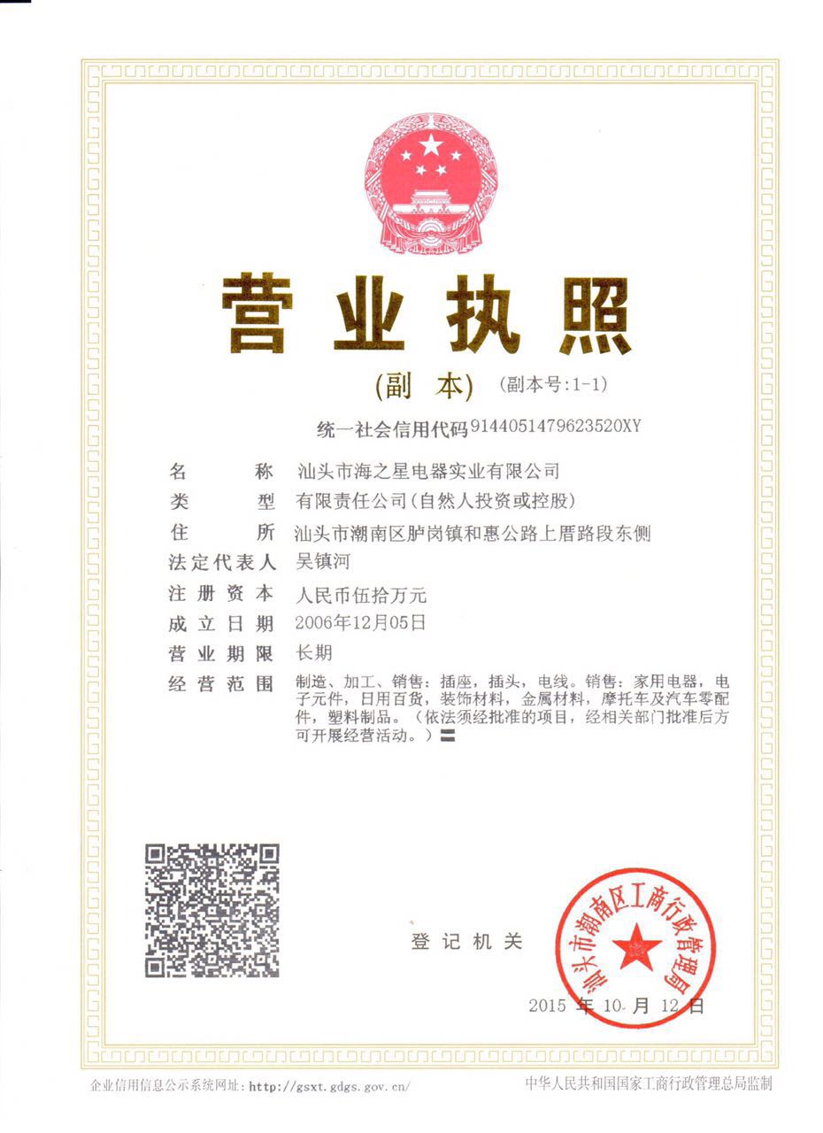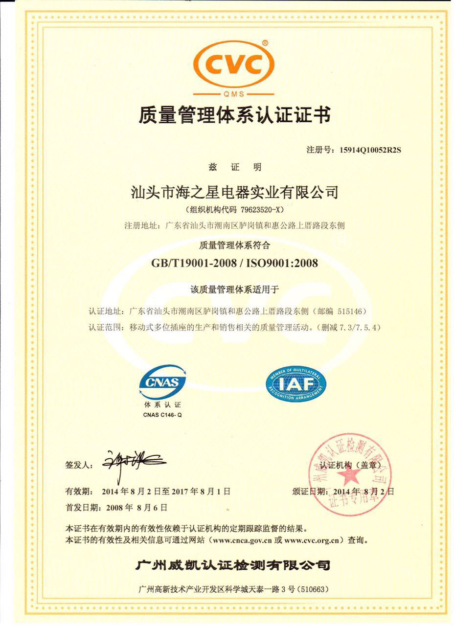 汕頭市海之星電器實(shí)業(yè)有限公司主要生產(chǎn)插頭、插座、轉(zhuǎn)換器、明線(xiàn)盒、暗線(xiàn)盒等系列產(chǎn)品。公司擁有先進(jìn)的生產(chǎn)設(shè)備和專(zhuān)業(yè)的技術(shù)人才,產(chǎn)品通過(guò)歐共體CE質(zhì)量體系認(rèn)證和3C國(guó)內(nèi)強(qiáng)制認(rèn)證,以?xún)?yōu)異品質(zhì)及良好聲譽(yù)贏(yíng)得市場(chǎng)份額,深受?chē)?guó)內(nèi)外用戶(hù)信賴(lài)。